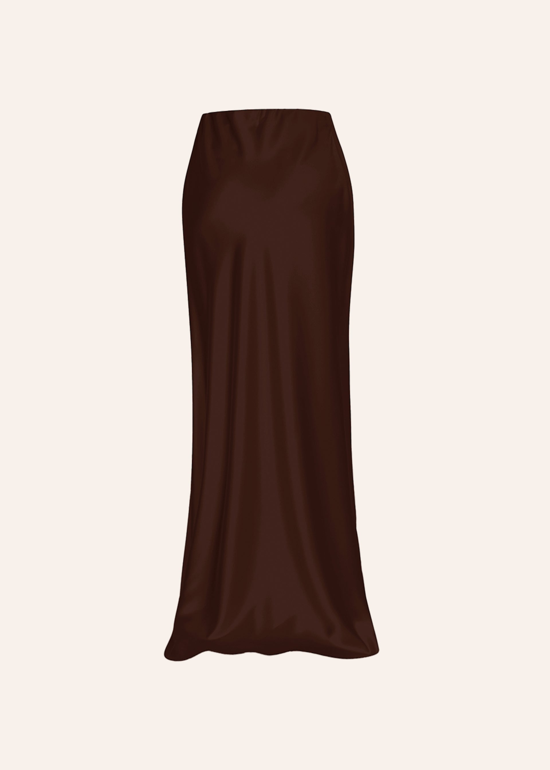 Права сатенена пола с леко разкрояване. Ластик в талията, който осигурява удобство и подчертава фигурата. Материята е от висококачествен сатен, който придава луксозно усещане и блестящ ефект. Силуетът на полата е плавен и подчертава женствената линия.