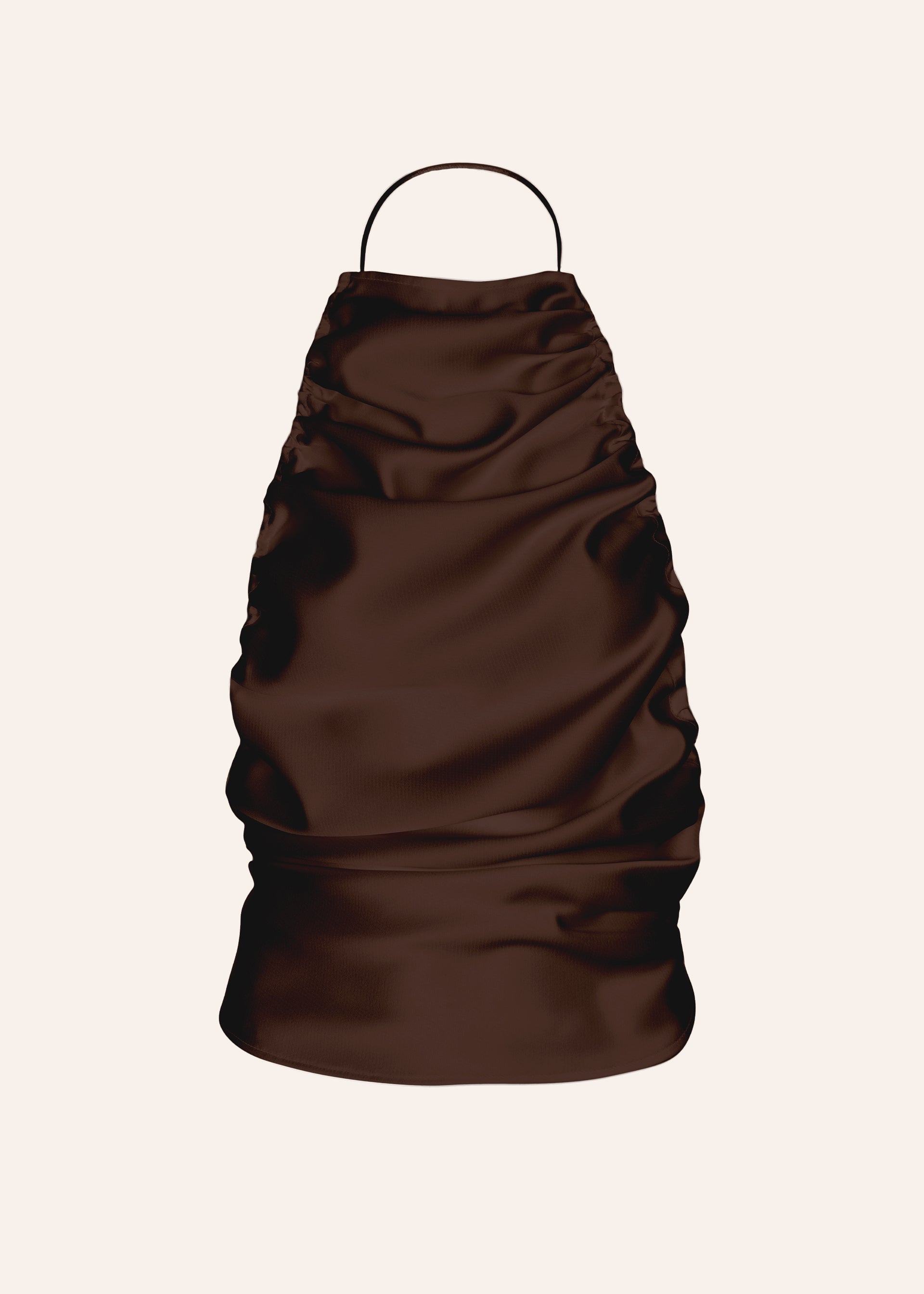 Кроп топ от висококачествен плътен сатен с гол гръб и регулируем набор в предната част. С много тънки презрамки за по-секси визия, които се регулират спрямо това колко стегнато бихте искали да бъдат завързани.